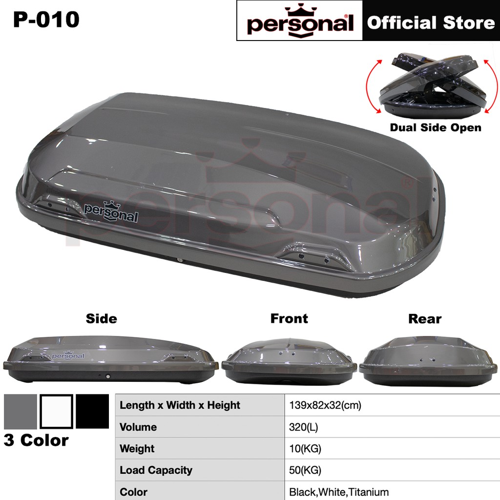 P010 Personal Slim Compact Roofbox Roof Box Storage 320L ABS Material